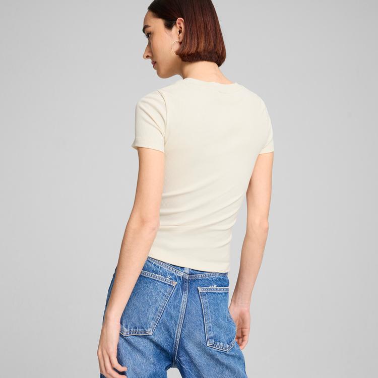 PUMA CLASSICS RIBBED SLIM T-SHIRT WOMEN IN WHITE, SIZE S