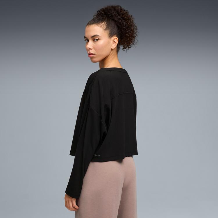 PUMA CLOUDSPUN ULTRA SOFT WOMEN'S RIBBED CLOUD LONG SLEEVE T-SHIRT IN BLACK, SIZE XS