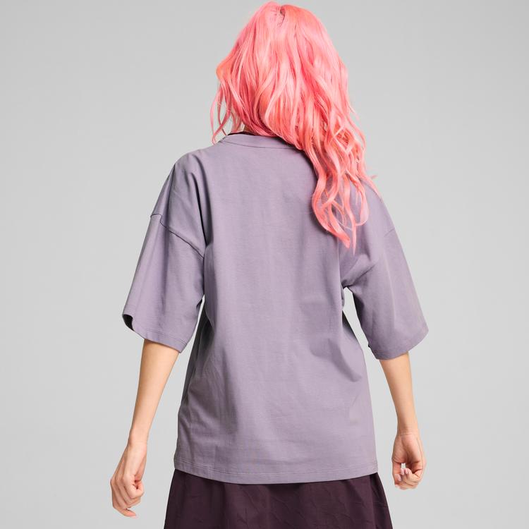 PUMA DARE TO WOMEN'S OVERSIZED CUT-OUT T-SHIRT IN PURPLE, SIZE XL