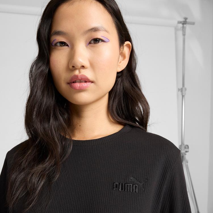 PUMA ELEVATED ESSENTIALS WOMEN'S LONG SLEEVE T-SHIRT IN BLACK, SIZE S