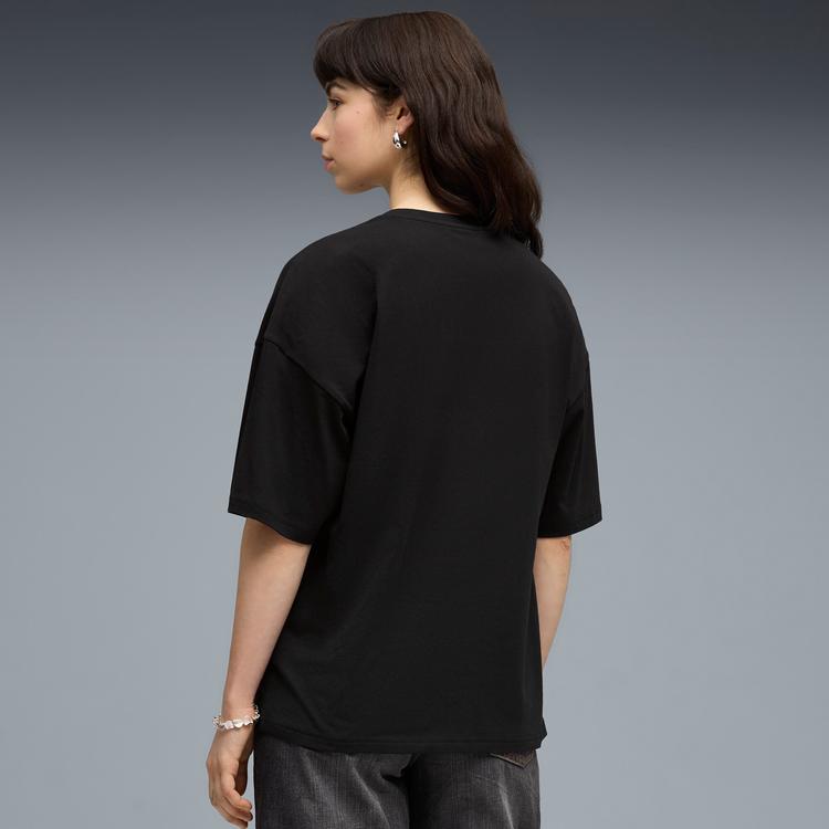 PUMA ESSENTIALS GRAPHICS BEDAZZLED WOMEN'S OVERSIZED T-SHIRT IN BLACK, SIZE S