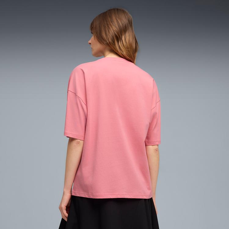 PUMA ESSENTIALS GRAPHICS BEDAZZLED WOMEN'S OVERSIZED T-SHIRT IN PINK, SIZE S