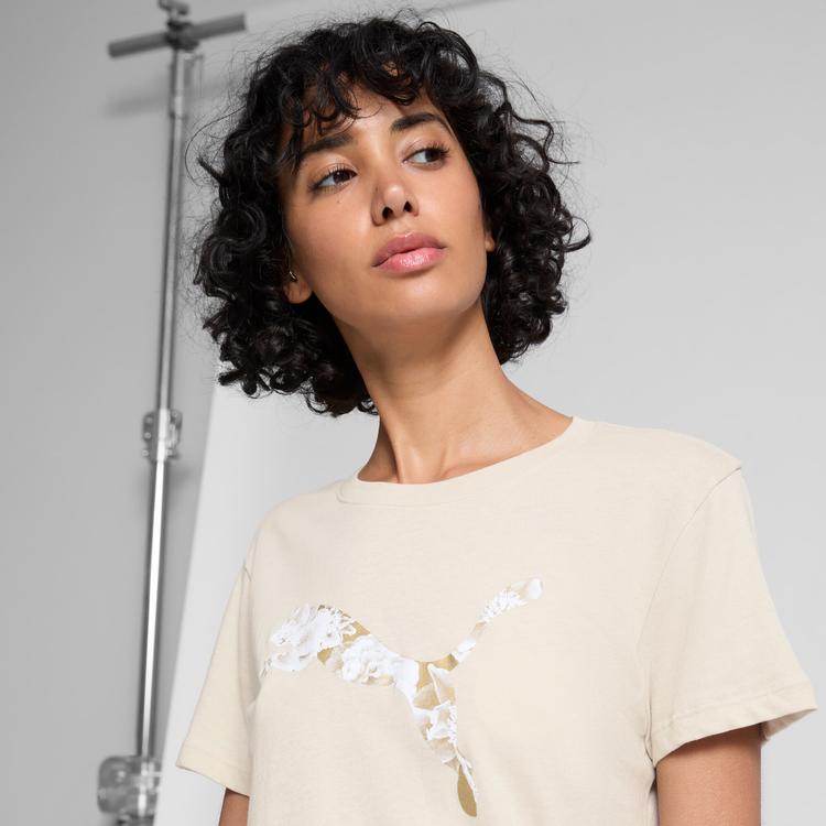 PUMA HOLIDAY METALLIC WOMEN'S T-SHIRT IN BEIGE, SIZE L
