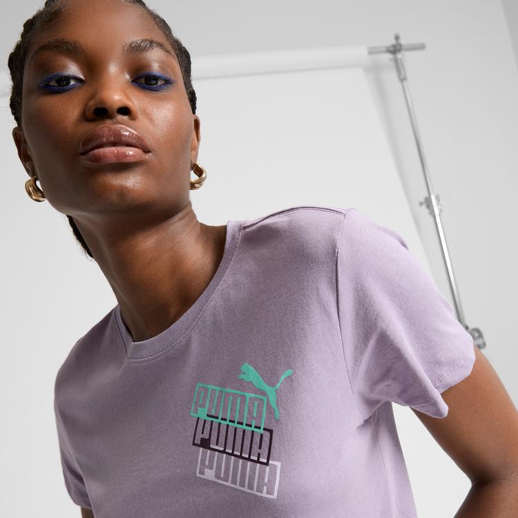 PUMA STACKED UP LOGO WOMEN'S T-SHIRT IN PURPLE, SIZE M
