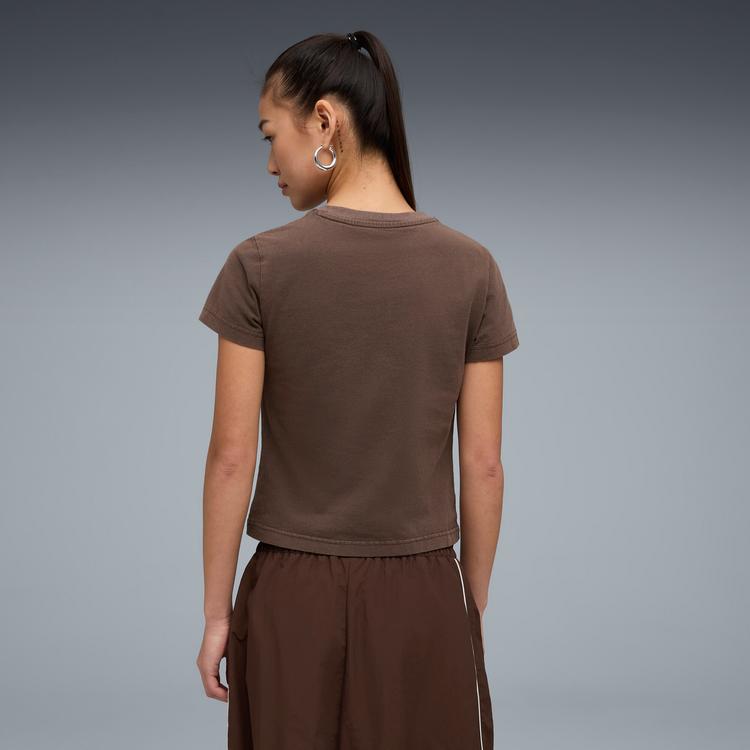 PUMA WARDROBE ESSENTIALS NYC WOMEN'S SLIM T-SHIRT IN BROWN, SIZE L