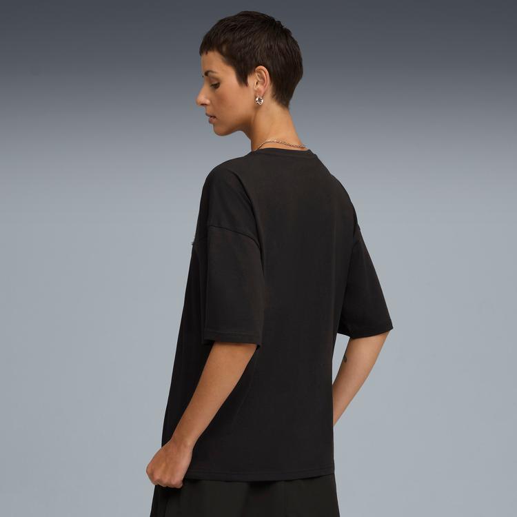 PUMA WARDROBE ESSENTIALS WOMEN'S OVERSIZED T-SHIRT IN BLACK, SIZE M