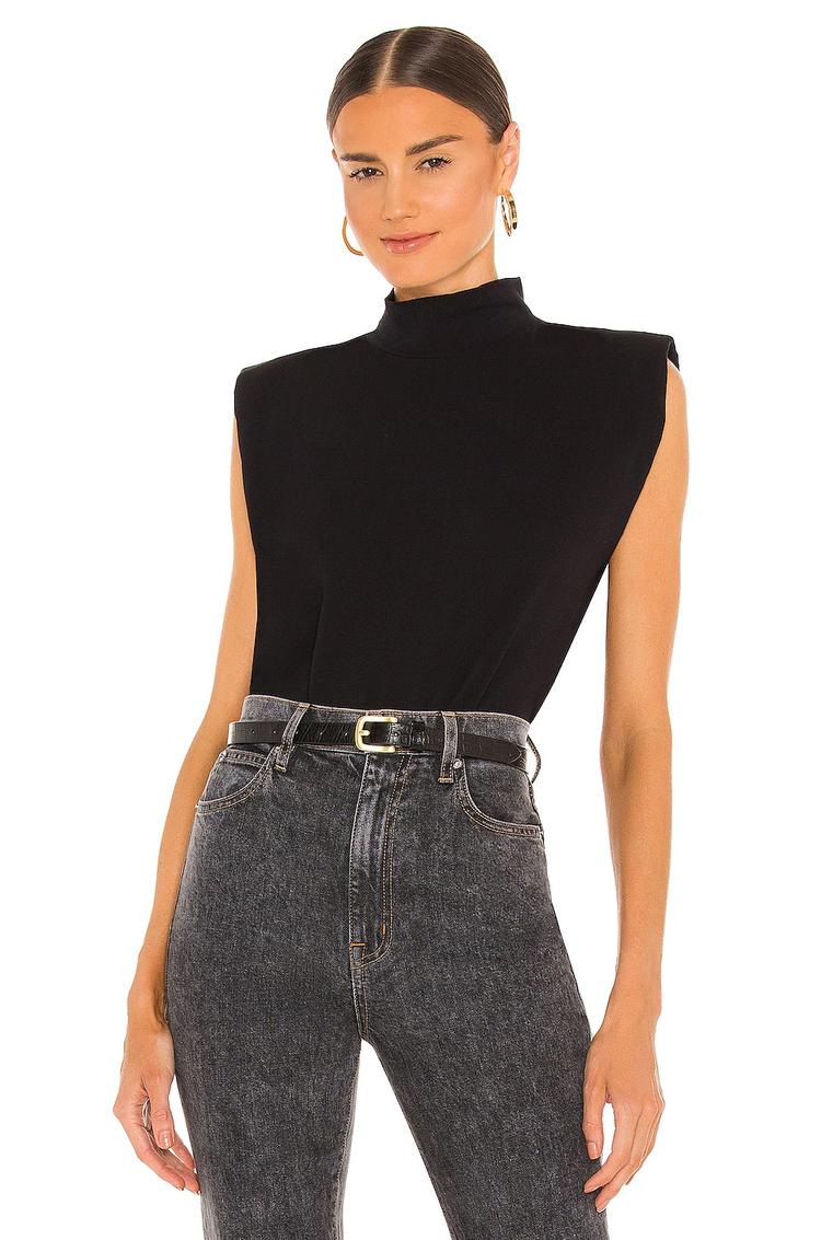 MOCK NECK SHOULDER PAD TEE