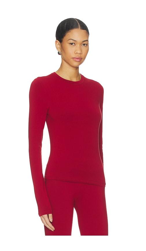 SKIMS COTTON JERSEY LONG SLEEVE T-SHIRT IN RED.