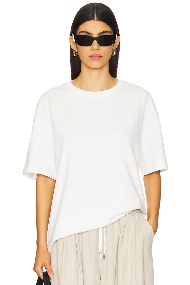 Soft organic cotton jersey shapes a relaxed-fit tee with a classic crew neck and half sleeves for comfortable, breathable wear. Its hip length and minimalist solid white design make it an essential versatile piece perfect for casual outings, everyday wear, and travel. The pullover style enhances ease and simplicity, while the relaxed fit ensures effortless comfort throughout the day. This lightweight, midweight tee pairs seamlessly with various bottoms for a clean, modern look that embodies casual chic.