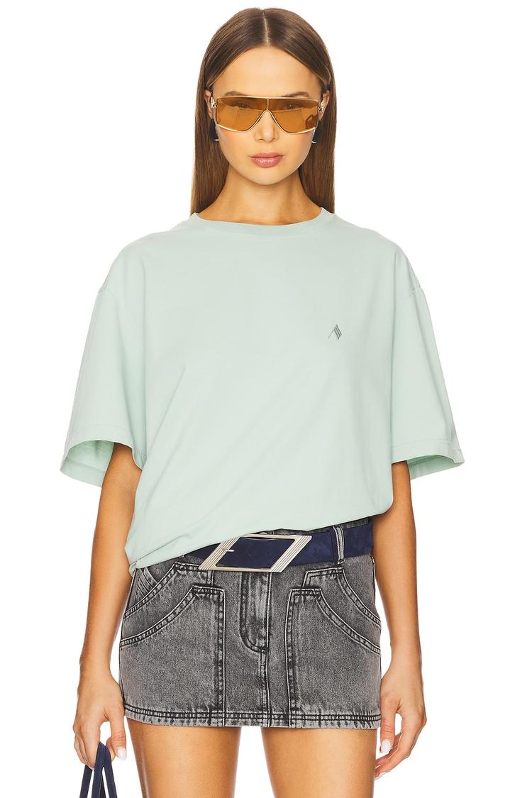 Soft, midweight cotton jersey in a light mint hue brings a fresh vibe to this loose-fitting swing T-shirt. Featuring a classic crew neck and comfortable half sleeves, it offers easy pullover styling and a distinctive side cut-out for an unexpected edge. Its hip length silhouette makes it versatile for casual outings, streetwear looks, or relaxed brunches. Minimalist and casual chic, this piece is perfect for spring and summer wardrobes, combining effortless comfort with a subtle statement detail for everyday wear.