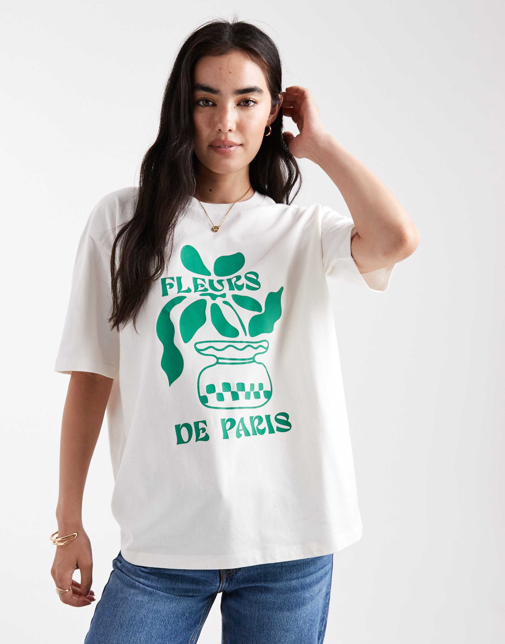 THREADBARE COTTON SHORT SLEEVE FLEURS GRAPHIC T-SHIRT IN ECRU