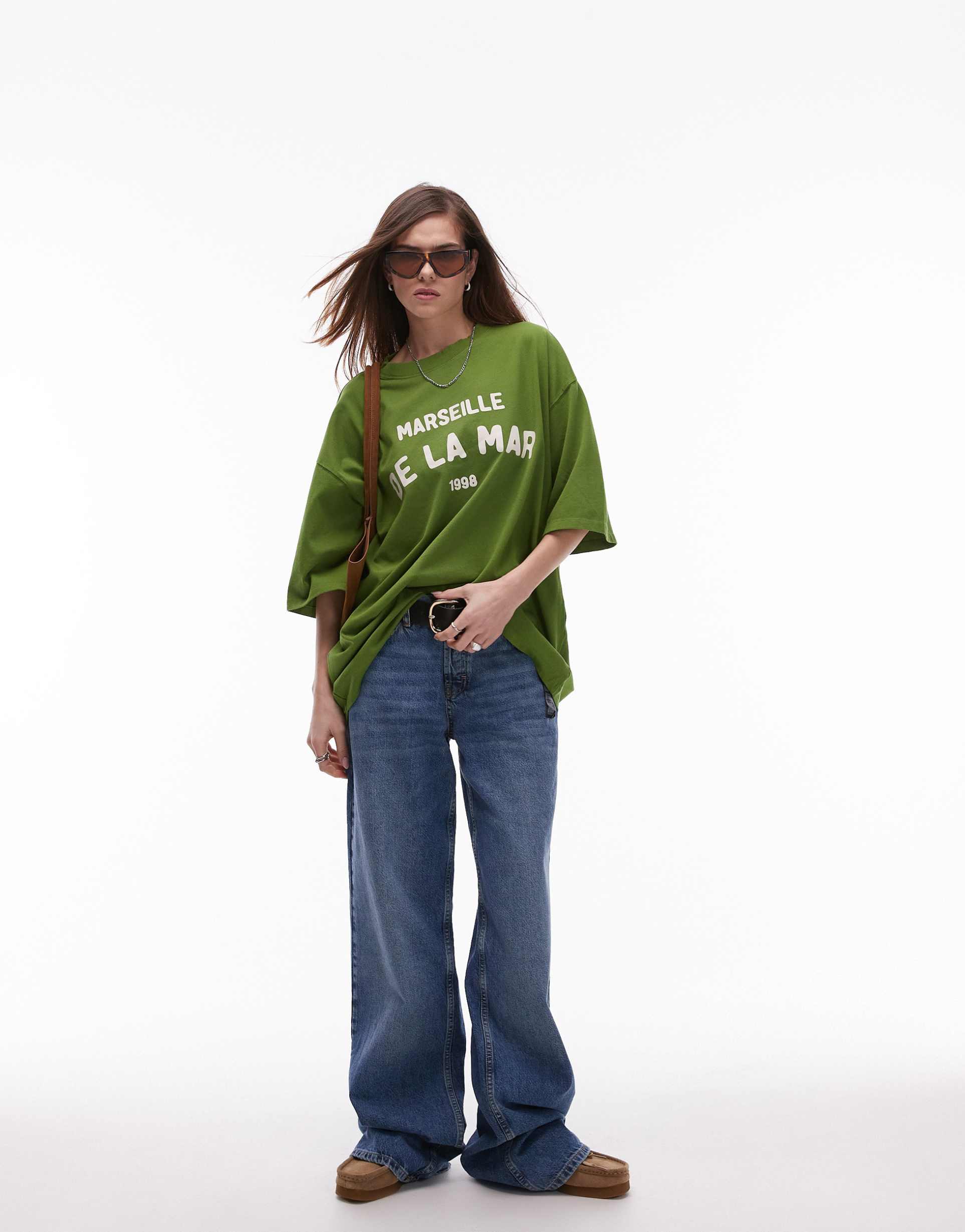 TOPSHOP GRAPHIC DE LA MAR OVERSIZED TEE IN GREEN