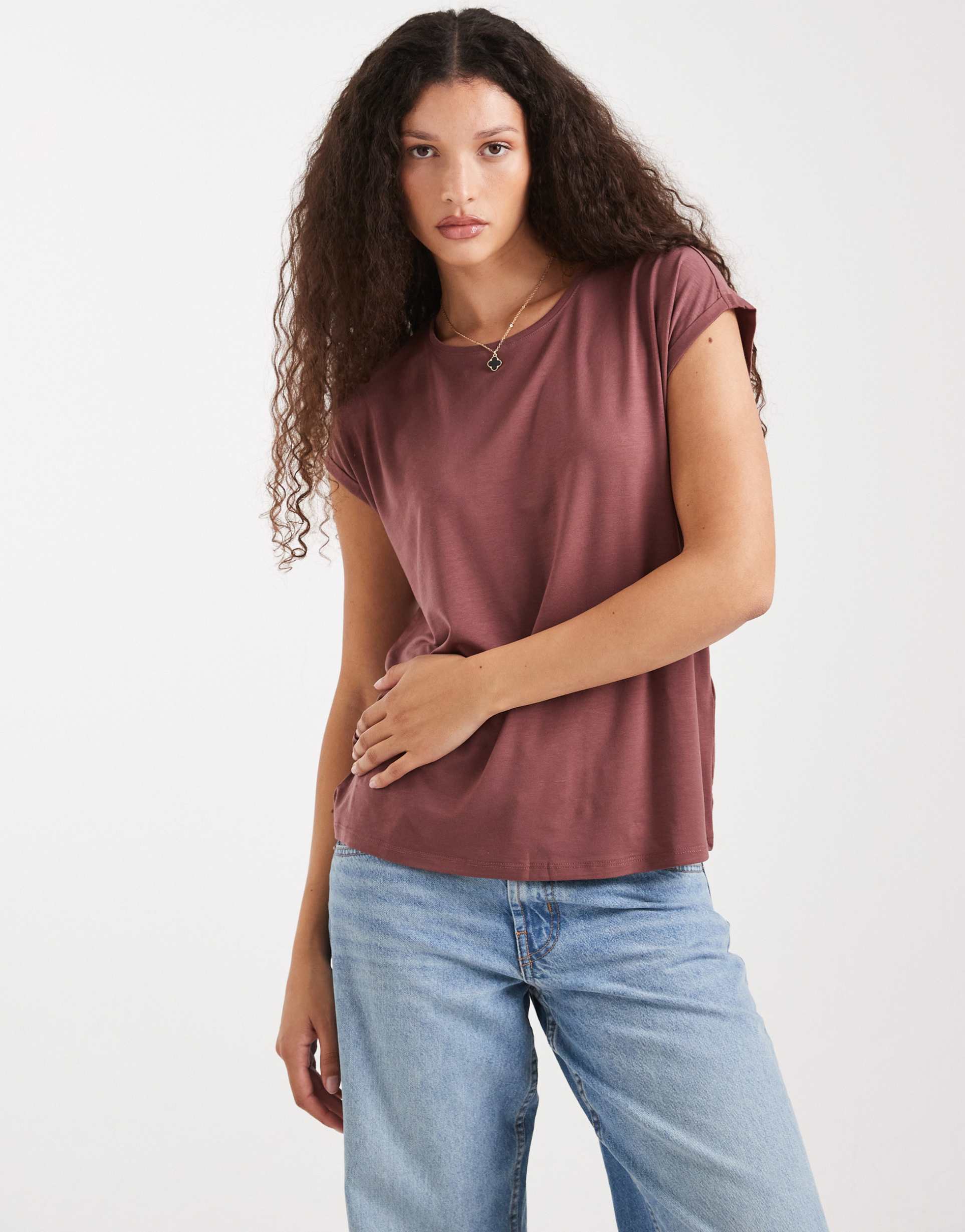 VERO MODA ROUND NECK T-SHIRT IN ROSE BROWN