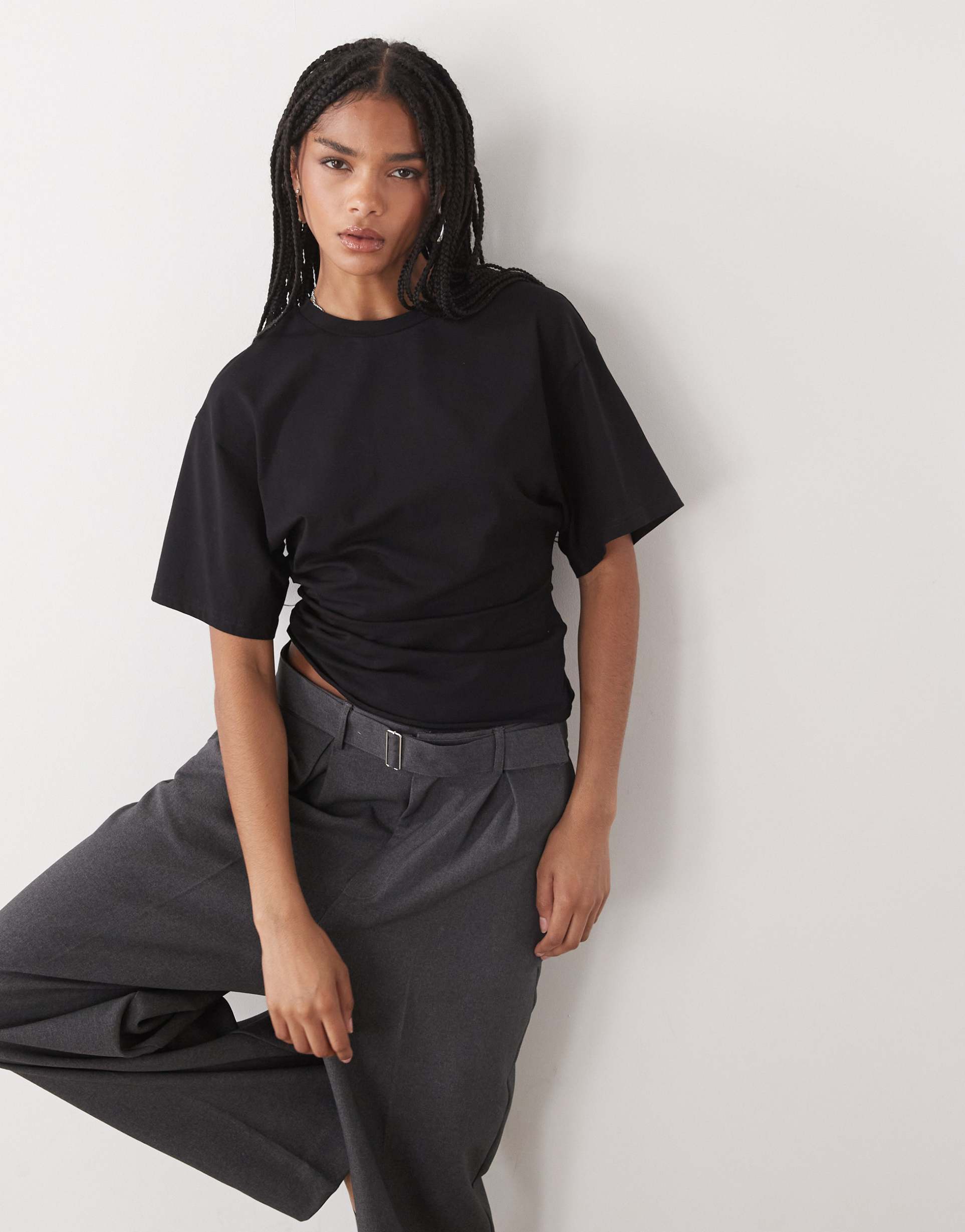 WEEKDAY CINCHED WAIST T-SHIRT IN BLACK