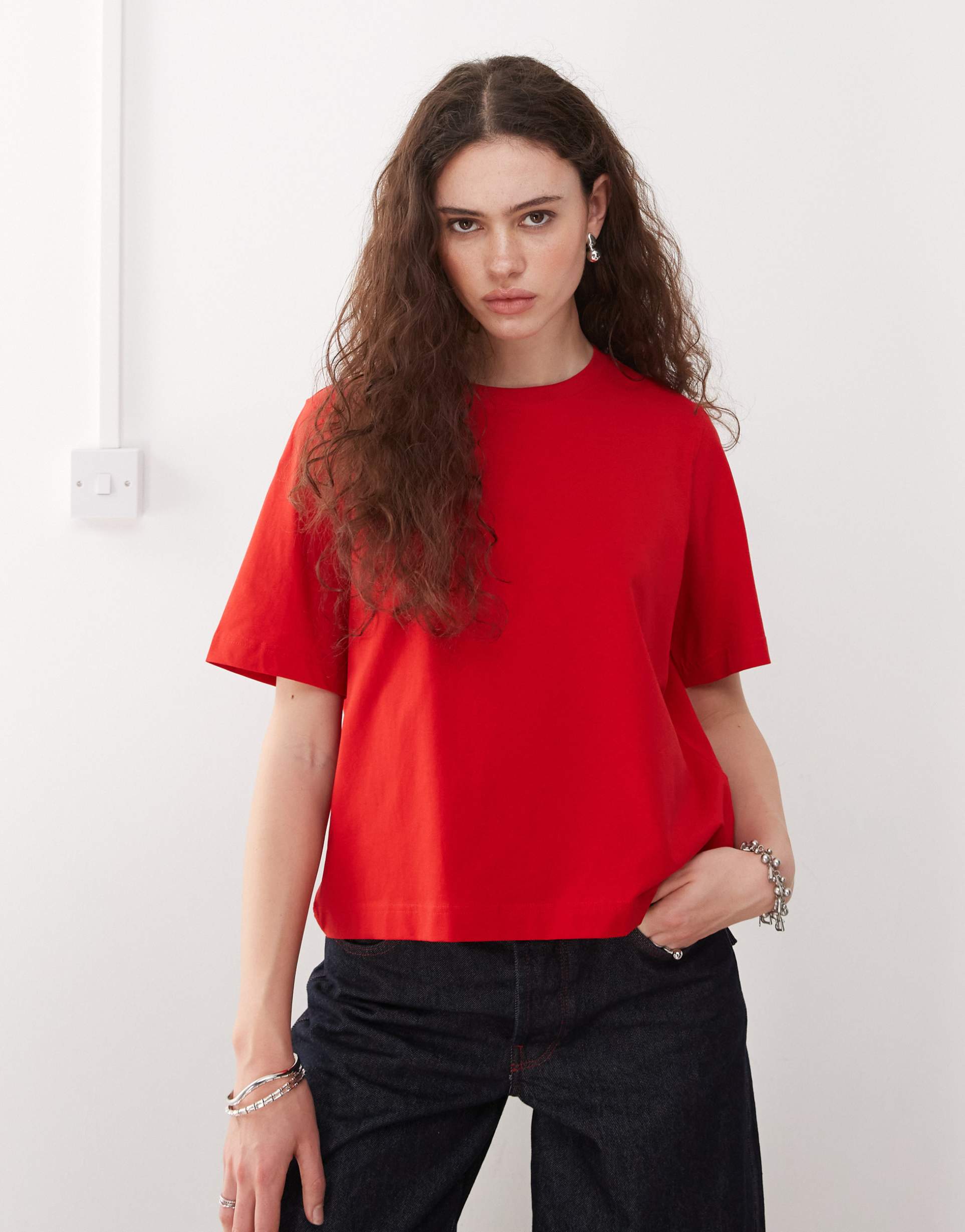WEEKDAY PERFECT BOXY FIT T-SHIRT IN RED