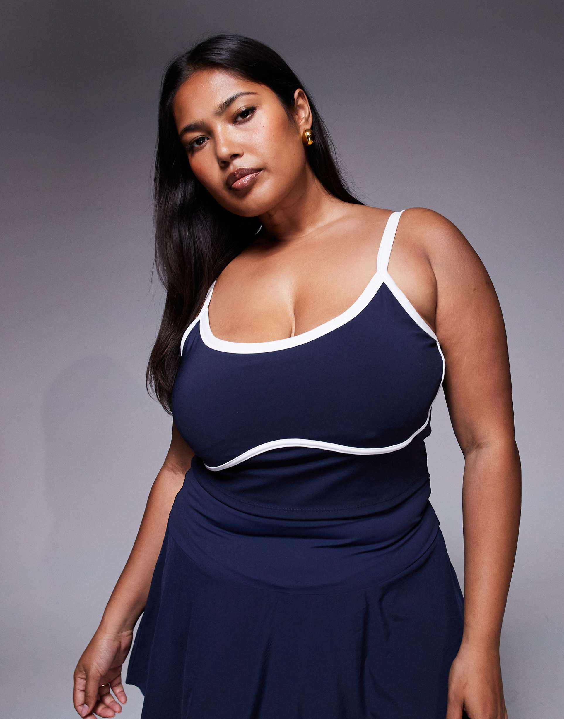 4505 CURVE ACTIVE TANK TOP WITH INNER BRA AND PIPING IN NAVY