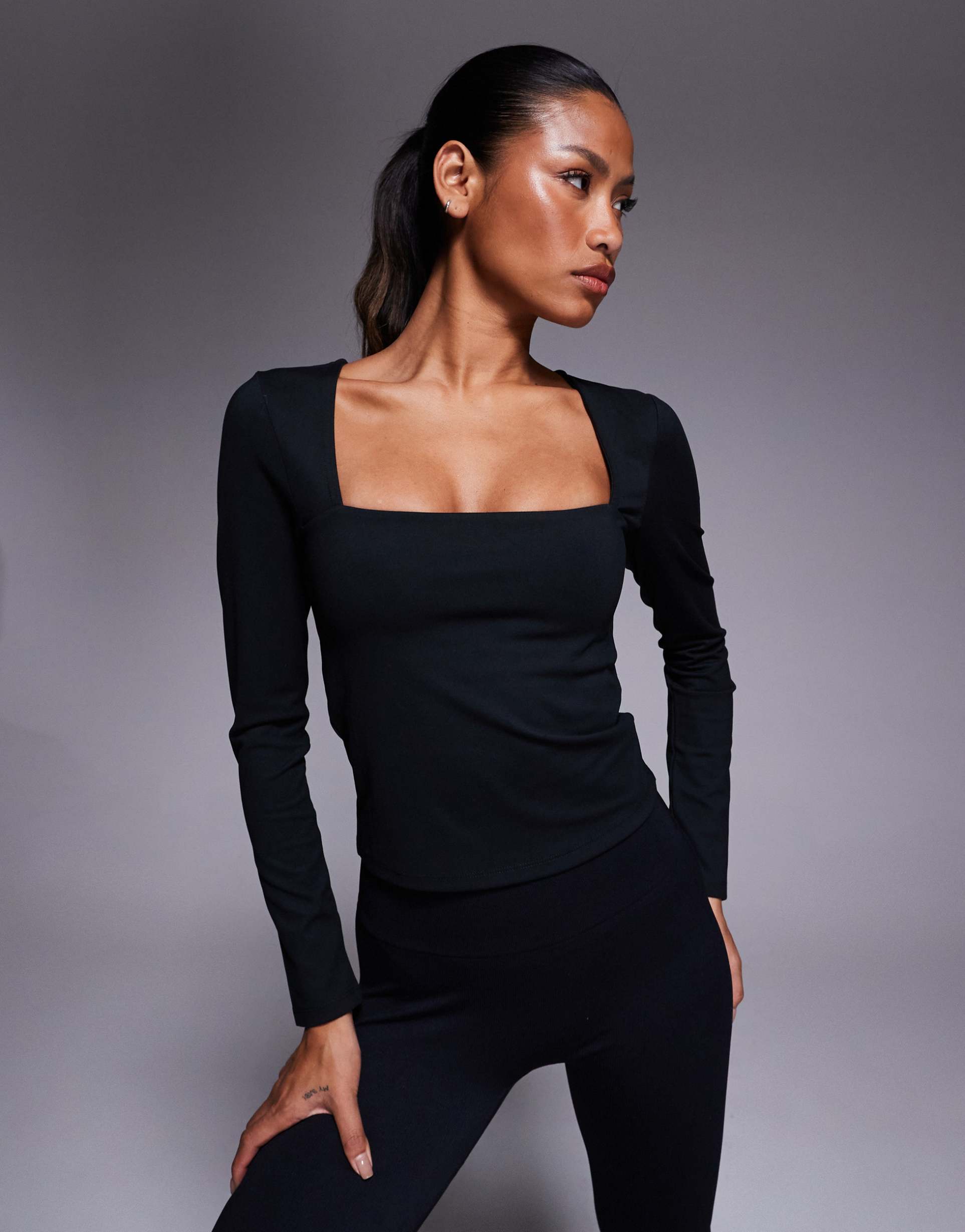 4505 SOFT TOUCH SQUARE NECK LONG SLEEVE TOP IN BLACK