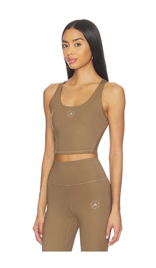 ADIDAS BY STELLA MCCARTNEY TRUE STRENGTH YOGA CROP TOP IN TAN.