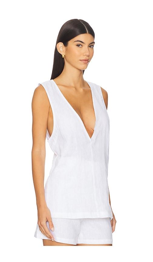 AEXAE LINEN V NECK TOP IN WHITE.