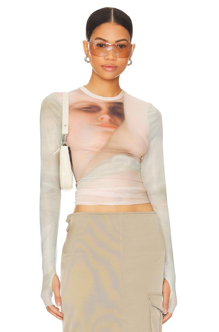 Lightweight mesh fabric with a semi-sheer finish gives this slim-fitting Shell top a modern edge. Featuring long sleeves with convenient thumbholes and a classic crew neckline, this waist-length top showcases a photographic print on the front that adds visual interest. Its pullover design and stretch polyester-spandex blend ensure comfort and ease, making it perfect for casual outings, streetwear looks, or everyday wear during spring, summer, and autumn. The minimalist style elevates your wardrobe with a trendy yet subtle vibe.