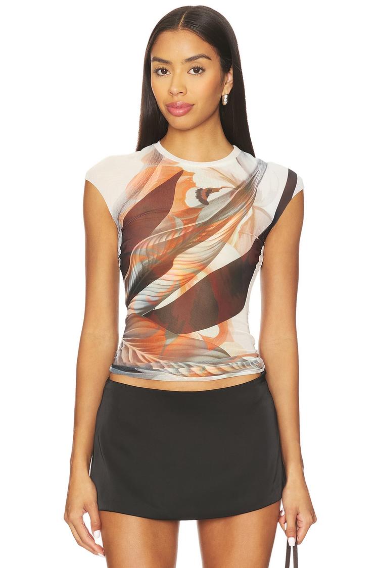 Softly sheer mesh fabric with an abstract brown and beige print defines this Nina Top by Afrm. Designed in a slim fit with sleeveless cap sleeves and a classic crew neck, the hip-length shell silhouette offers a modern, trendy vibe perfect for spring and summer. The pullover style and covered back ensure easy wearability. This versatile top transitions effortlessly from casual brunches to lively night outs, making it an essential piece for street style and contemporary wardrobes.