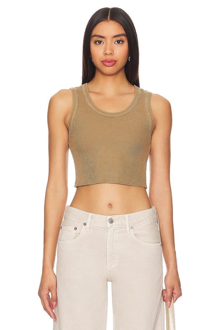 A ribbed jersey tank with a sleek fitted silhouette and cropped length, crafted from a sustainable cotton-lyocell blend with a touch of elastane for comfort. The matte tan hue and round neckline paired with wide straps create a minimalist yet chic style perfect for warm spring and summer days. Featuring a clean covered back and a modern laser-cut hem, this tank offers effortless versatility from casual outings and everyday wear to brunch and vacation looks.