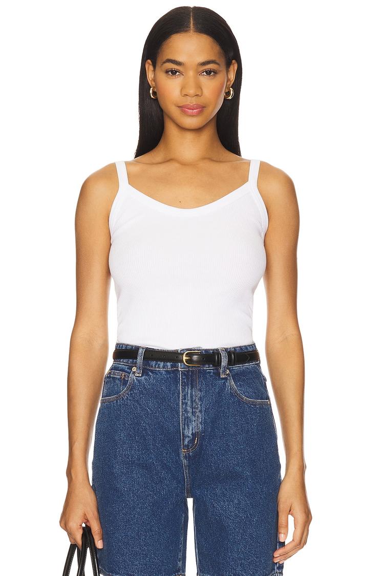 Soft ribbed jersey fabric blends organic cotton, lyocell, and spandex to create a fitted tank with wide straps and a classic scoop neckline. This waist-length minimalist tank offers breathable comfort and a sleek silhouette, making it an essential layering piece for casual, everyday wear, brunch dates, and travel adventures. The covered back and sleeveless design provide ease of movement and versatility for spring and summer seasons. A clean white hue ensures effortless styling with various bottoms for a chic, casual look.