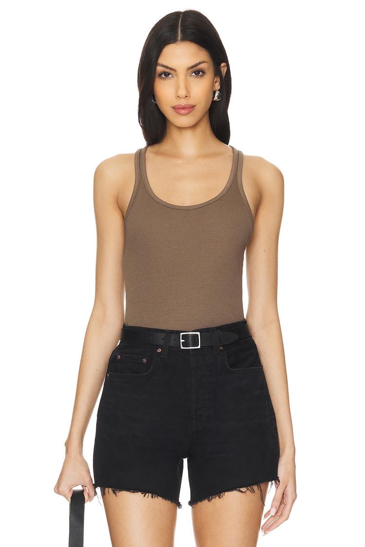 Soft jersey knit fabric crafted from a blend of micro modal, supima cotton, and spandex creates a smooth, fitted silhouette in this hip-length tank. Featuring a scoop neckline and wide straps, it offers a minimalist yet chic look perfect for warm weather. Its versatile brown matte hue makes it an ideal layering piece or standalone top for casual outings, everyday wear, and travel adventures. The slip-on design and stretch fabric ensure comfort and ease throughout the day.