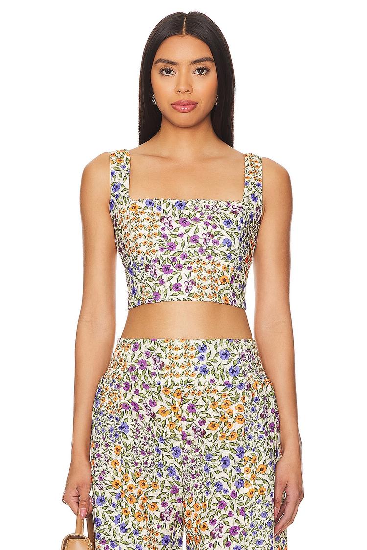 Lightweight cotton and a fitted cropped silhouette create a breezy, bohemian-inspired look in this Kosia Top. The square neckline and wide straps frame the shoulders elegantly, while intricate micro floral beading and a smocked back panel add delicate texture and charm. Perfect for spring and summer, this floral print top pairs beautifully with casual or vacation wardrobes, making it ideal for brunches, relaxed get-togethers, or sunny outings. Its breathable fabric and flattering fit offer both comfort and style for effortless warm-weather dressing.