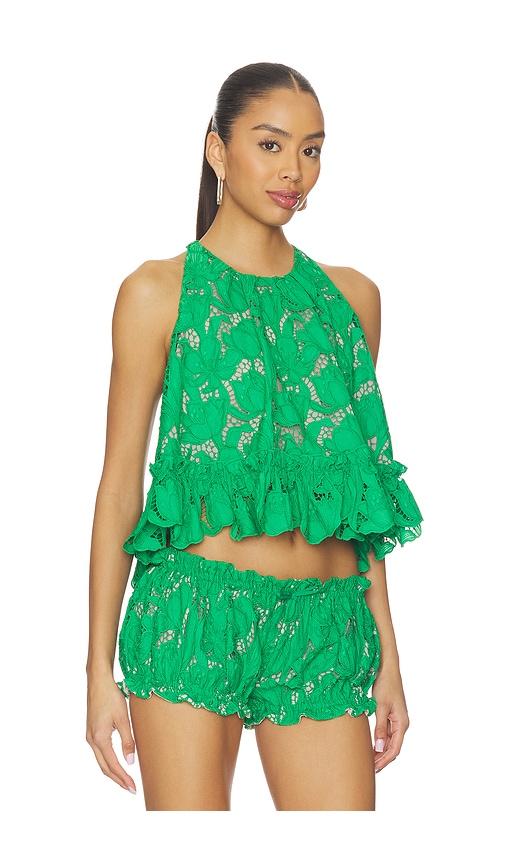 AKNVAS MIKA GUIPURE LACE HALTER TOP IN GREEN.