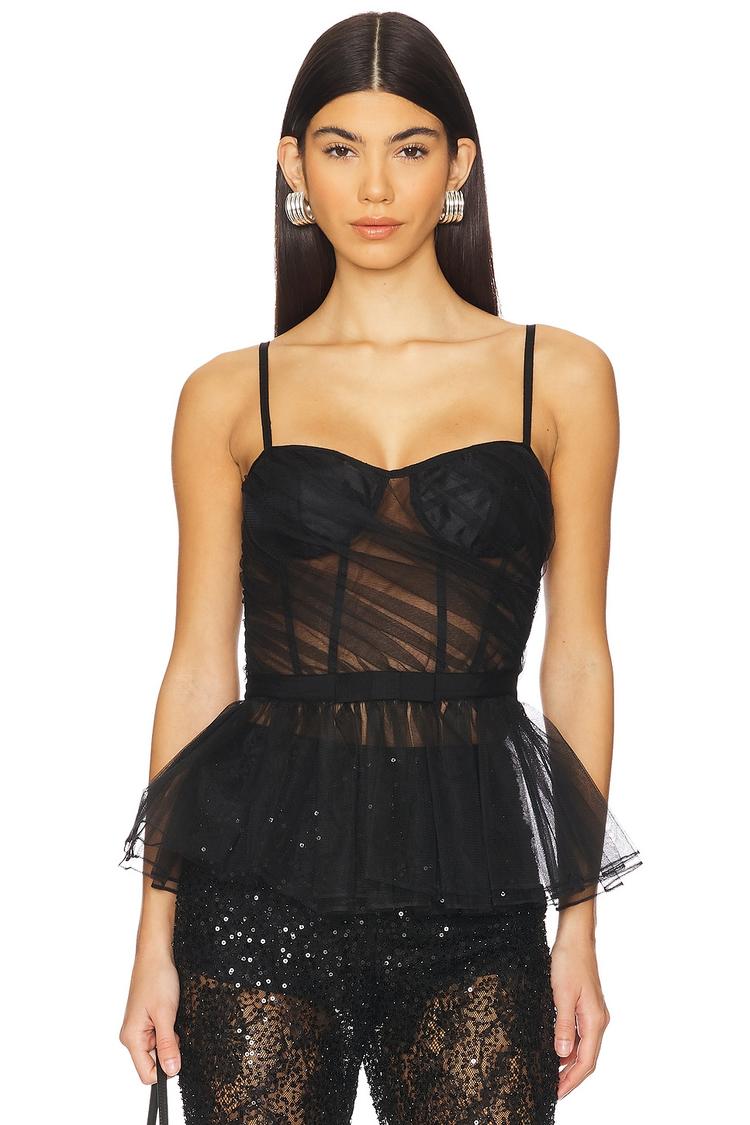 Feel the night come alive in the Rina Top—a cropped, corset-inspired piece that hugs your shape. Made from lightweight polyester and chiffon, it features a boned bodice with underwire cups for sculpted shape and semi-sheer mesh panels for a hint of allure. Adjustable spaghetti straps and an exposed back zipper keep the fit sleek and modern. A peplum-like ruffle at the waist adds movement over high-waisted bottoms for a chic night-out look. Pair with a sleek skirt or leather shorts for date night, cocktail, or club-ready style.