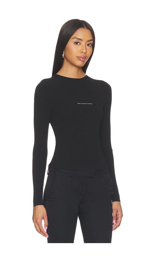 ALEXANDER WANG LONG SLEEVE CREWNECK TOP WITH JACQUARD LOGO IN BLACK.