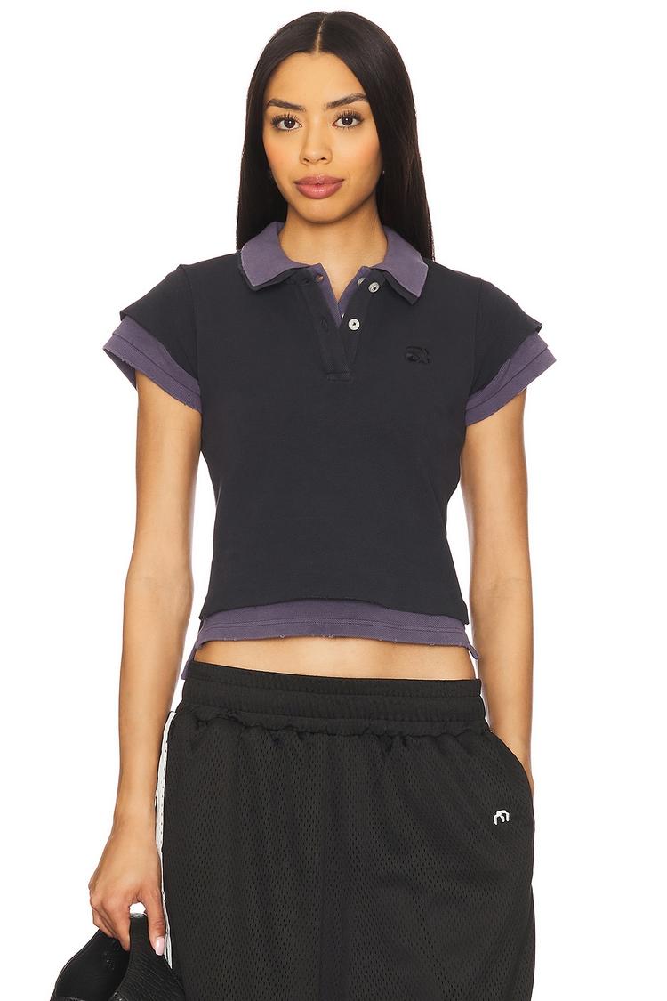 Layered with a subtle contrast collar and cuffs in dusty purple, this shrunken polo features a fitted silhouette crafted from a midweight cotton-nylon-elastane blend for comfortable stretch. The quarter button closure and embroidered logo add refined detail to the classic polo collar and cuffed half sleeves. Its waist-length cut and minimalist style make it an ideal choice for casual streetwear, everyday errands, or business casual settings in spring through autumn.