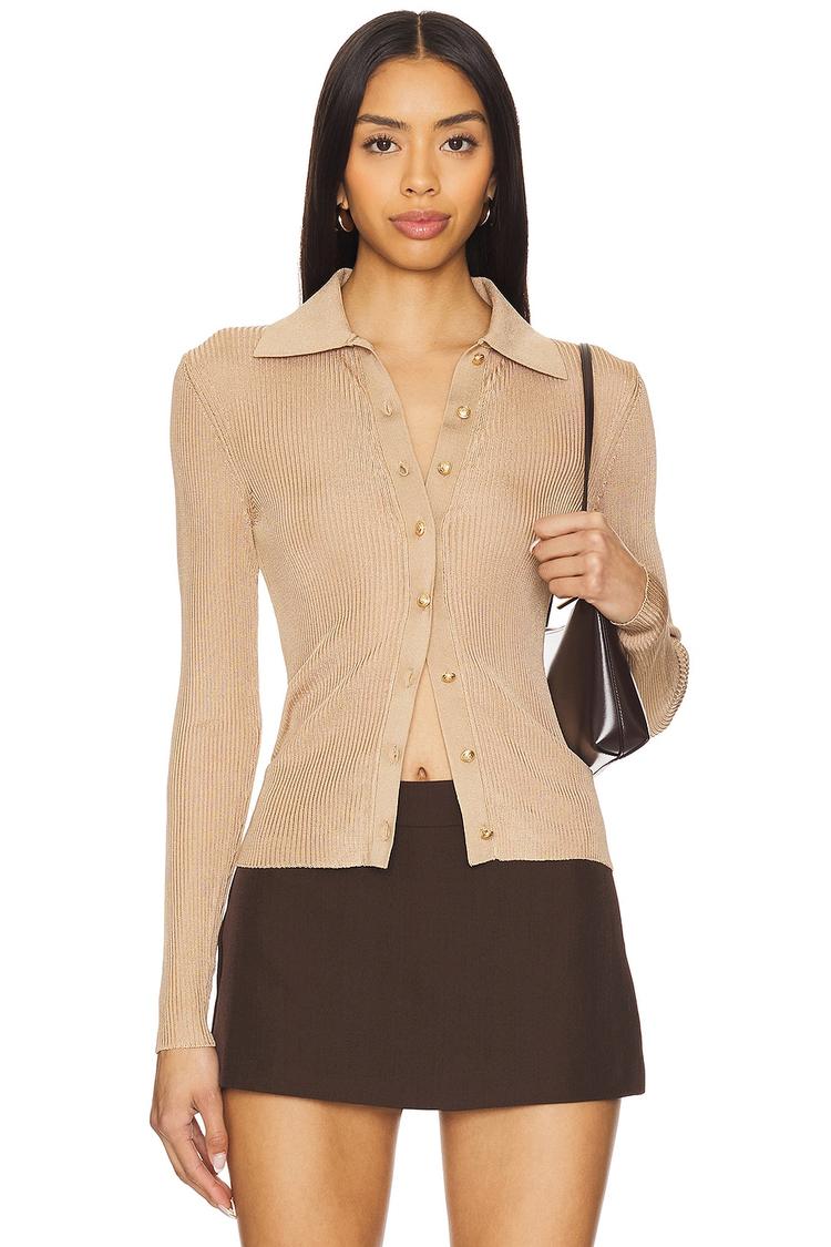 Softly ribbed and crafted from a midweight viscose blend, this beige polo top features a fitted silhouette with long regular sleeves and a classic polo collar. Gold-tone buttons down the front add a subtle luxe touch, perfectly balancing casual and sophisticated vibes. The hip-length cut makes it versatile for layering or standalone wear. Ideal for everyday outings, business casual settings, or brunch dates, this knit polo brings understated elegance and comfort to your seasonal wardrobe.