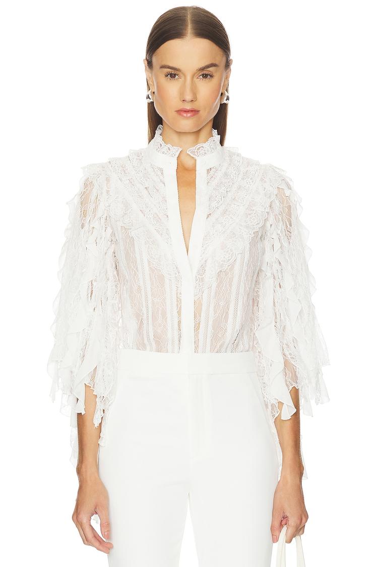 RHEBA LACE RUFFLE SLEEVE TOP