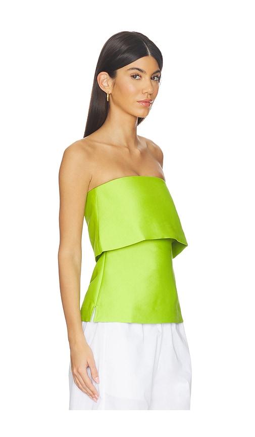 ALIGNE FELIX SATIN STRAPLESS TOP IN GREEN.