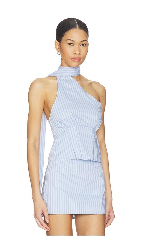 ALL THE WAYS SANDY TIE NECK TOP IN BABY BLUE.