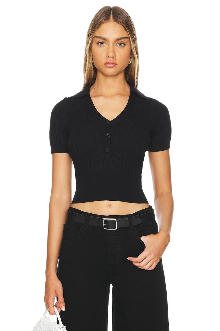 Sleek and versatile, this fitted cropped top in matte black knit fabric features a flattering V-neck and half sleeves with a partial front button closure. Its minimalist silhouette and comfortable stretch blend of viscose, nylon, and elastane make it ideal for casual outings, workwear, or brunch occasions. The covered back and clean lines offer a modern chic vibe, perfect for layering or standalone styling throughout the year.
