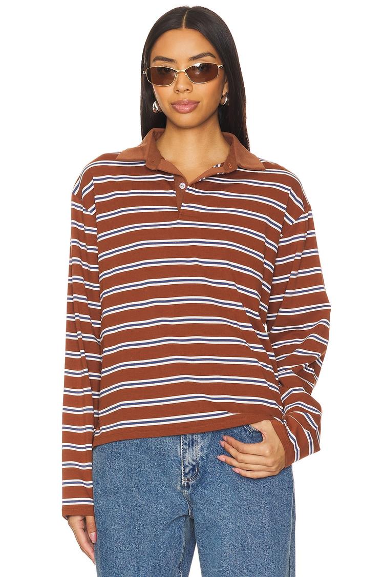 Soft midweight terry cloth fabric blends cotton and spandex for comfort and stretch in this oversized Henley top. The matte brown base with white all-over stripes creates a casual chic vibe, complemented by a classic ribbed collar and partial front button closure. Long sleeves and a hip-length hem provide a relaxed fit perfect for everyday wear, loungewear, or travel. This minimalistic striped Henley is ideal for autumn, winter, and spring seasons, bringing effortless style and cozy versatility to casual wardrobes.
