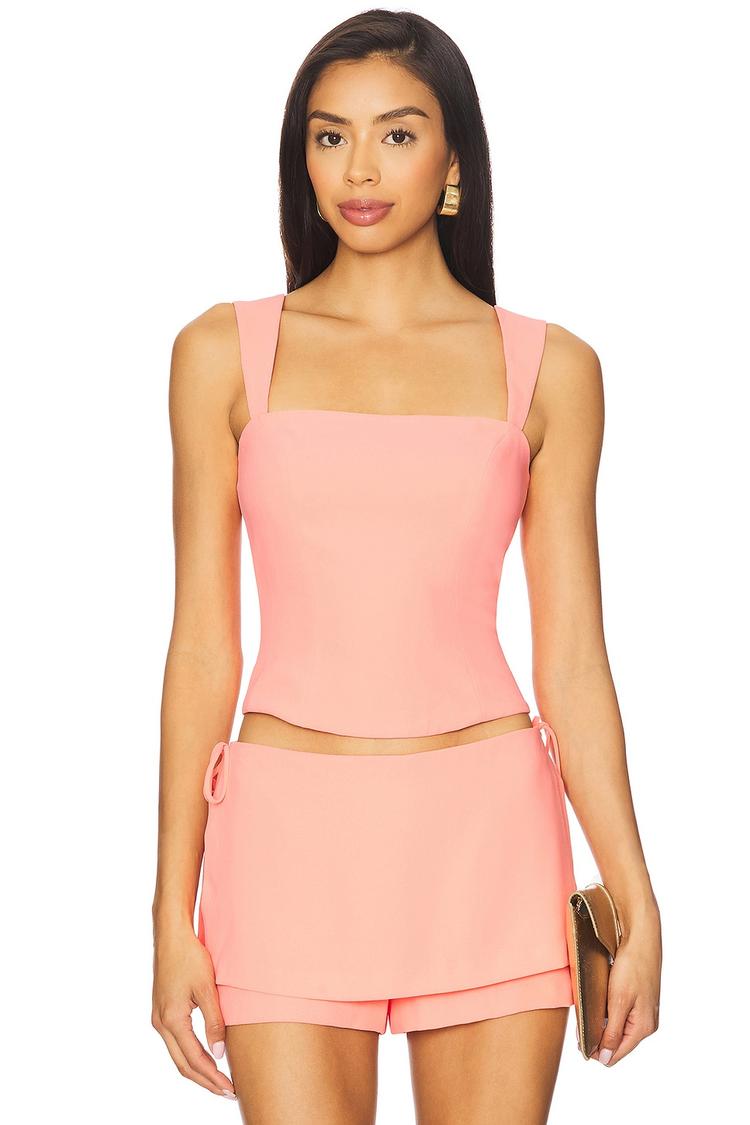 Soft matte peach crepe fabric defines this chic camisole featuring a fitted silhouette and square neckline. The wide straps are adjustable for a personalized fit, while the invisible back zipper ensures a sleek finish. Its waist-length cut makes it a versatile piece perfect for spring and summer, ideal for casual outings, brunch dates, or night outs. This sophisticated top pairs effortlessly with various bottoms for a polished yet effortless look.