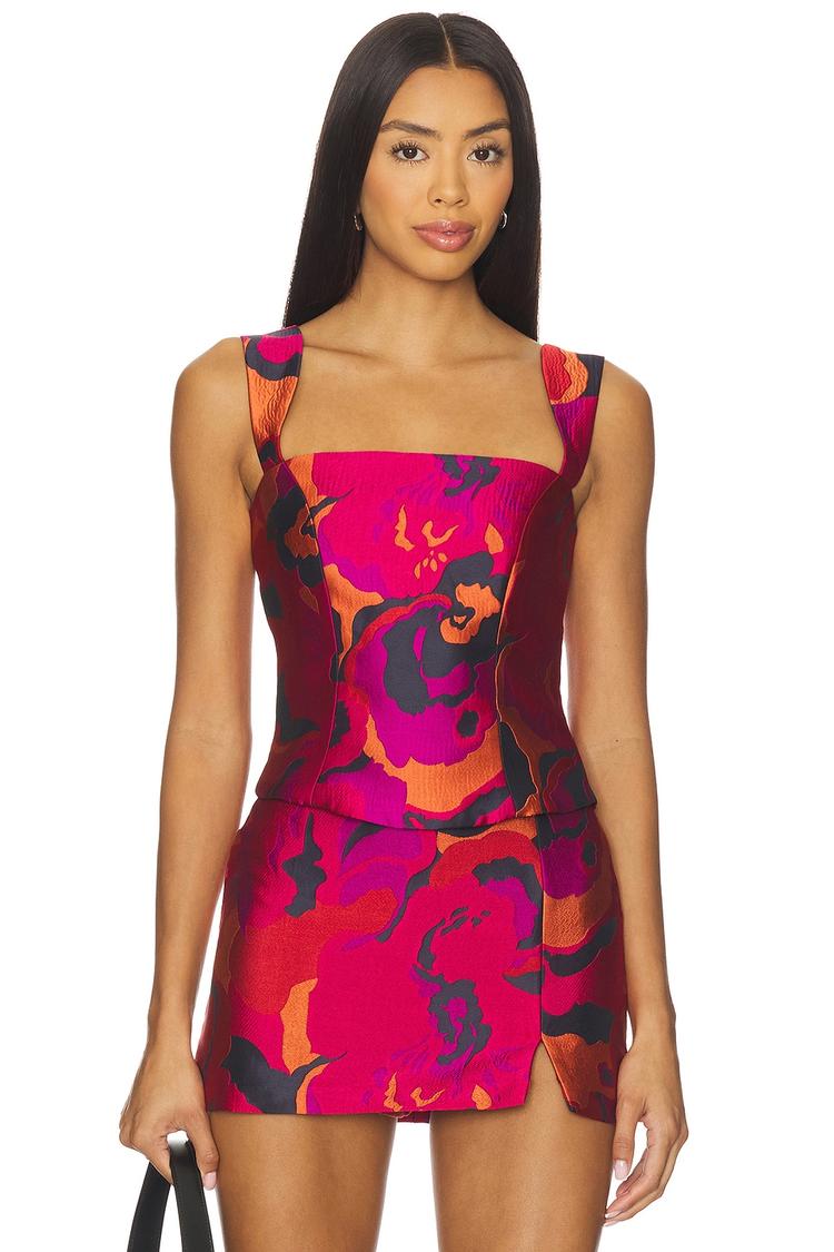 Vibrant and fitted, this cropped Ceronne top features a bold floral print in bright fuchsia, dark purple, and red hues. Crafted from midweight satin polyester, it offers a sleek matte finish with a square neckline and wide straps that are adjustable for a perfect fit. The hidden back zipper ensures a smooth silhouette, making it an ideal choice for spring and summer outings. Perfect for casual days, brunch with friends, or a night out, this chic and trendy piece adds a pop of color and sophistication to your wardrobe.