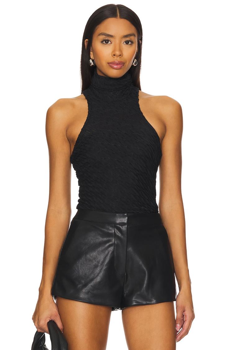 Textured mesh fabric meets a sleek halter neck silhouette in this fitted tank top, designed for a flattering hip-length fit. Crafted from a comfortable polyester-elastane blend with a rayon lining, it features a concealed back zipper for a smooth finish. The matte black hue and sleeveless strapless styling make it a versatile choice for casual outings, brunch dates, or night events, effortlessly blending modern minimalism with chic appeal.