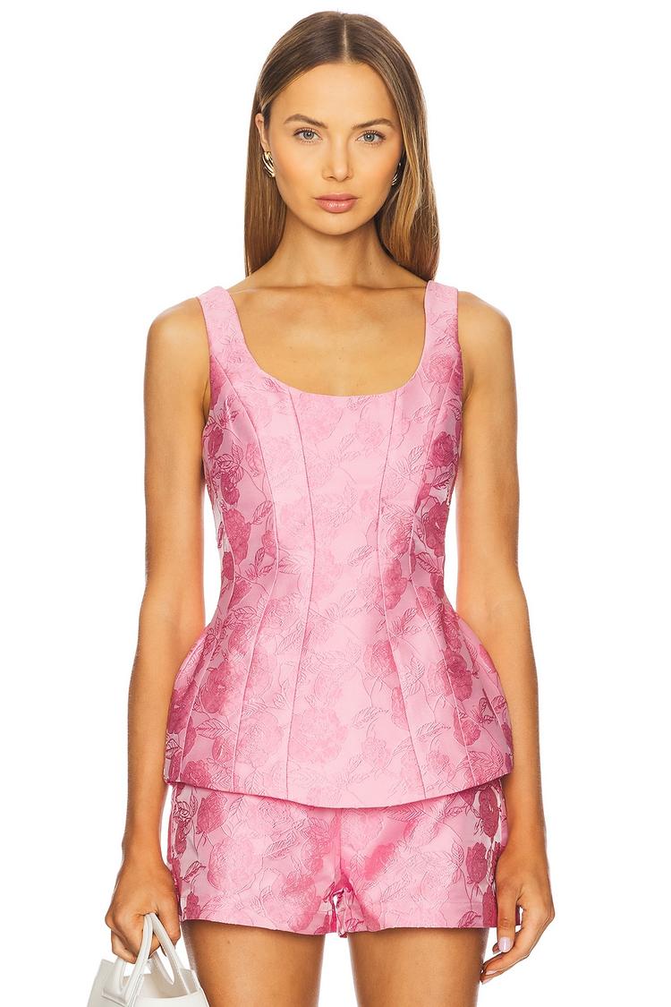 Soft jacquard texture and a flattering empire silhouette define this sleeveless top in a lovely pink hue. Featuring a round neckline and wide straps, it offers a fitted shape with a hidden back zipper for a smooth finish. Its hip-length cut makes it perfect for pairing with shorts or skirts for casual outings, brunch dates, or relaxed evening events. Crafted from midweight polyester, this elegant and chic piece suits spring through autumn seasons, combining classic style with contemporary comfort.