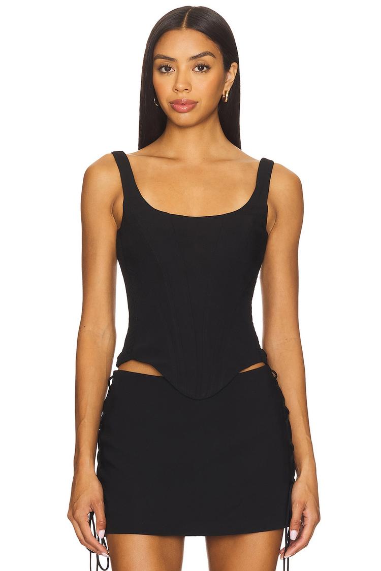 Sleek and modern, this fitted polyester corset tank features a matte black crepe fabric that sculpts the silhouette with a chic smocked side panel detail. The sleeveless design and square neckline at both front and back enhance its minimalist yet sexy appeal. An exposed back zipper closure adds an edgy touch to the hip-length hemline, making it perfect for warm spring and summer days. Ideal for casual outings, brunches, or night outs, this versatile piece blends contemporary style with effortless elegance.