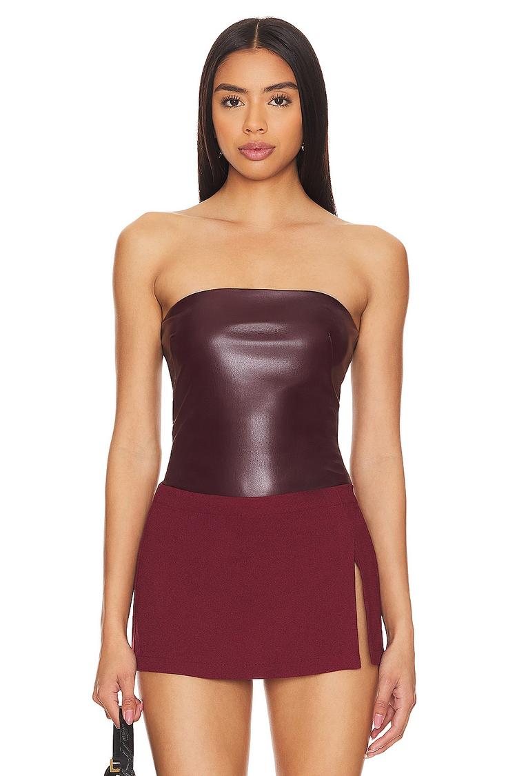 faux leather tube top burgundy
