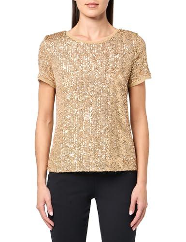 Feel radiant in Anne Klein's Sequin Mesh Tee. A champagne-gold silhouette, it shines with all-over sequins over a soft polyester mesh for a lit-from-within glow. The round crew neck and short regular sleeves frame a relaxed hip-length silhouette, finished with a pullover design. The fabric mix offers a breathable, lightweight feel with a trace of stretch for ease. Style it with black tapered pants or a sleek midi for cocktail nights, date-night events, or festive gatherings—elevate with stilettos and a clutch. The triple-mesh construction and sequin overlay bring modern texture and unmistakable evening allure.