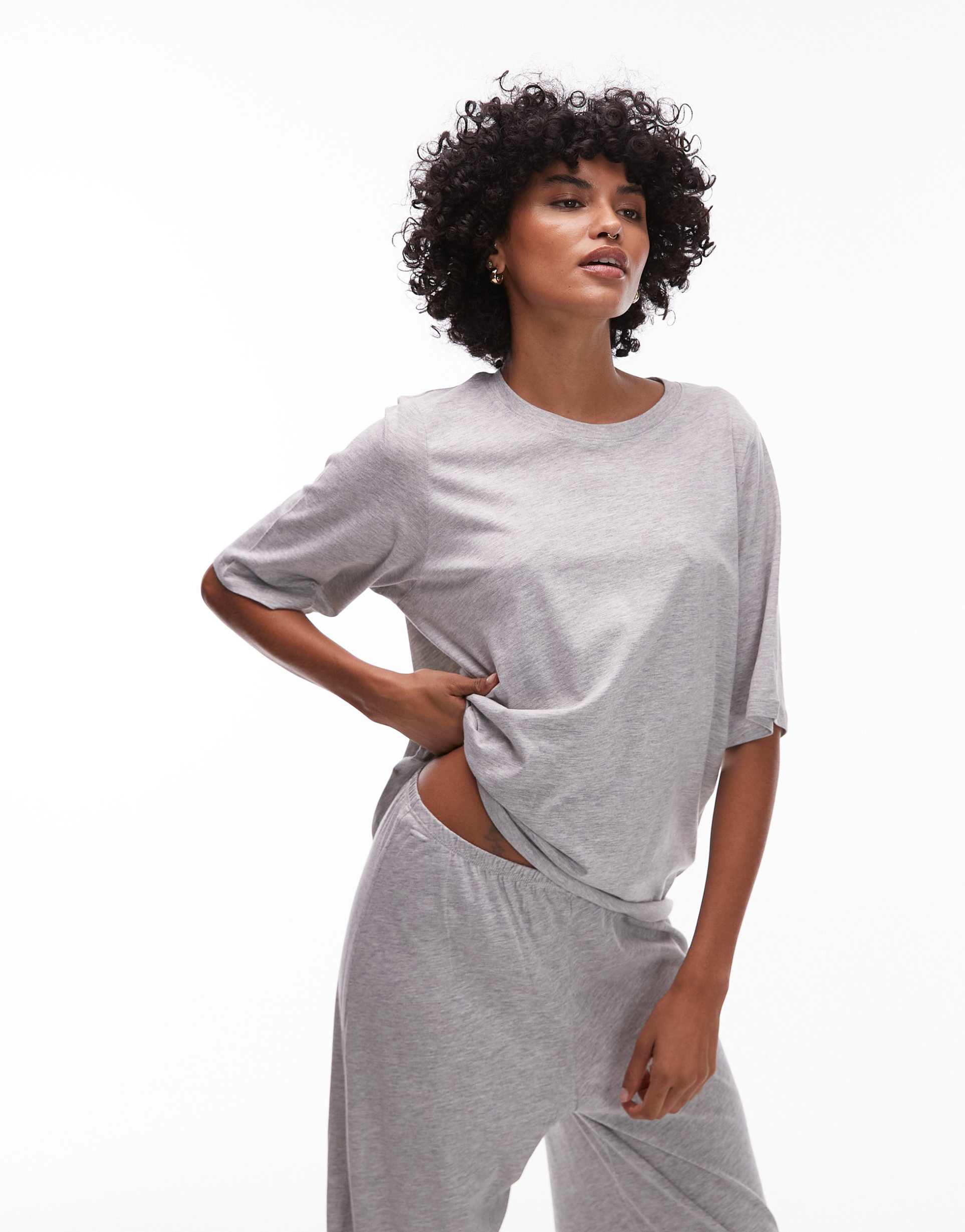 ARKET MIX AND MATCH COTTON T-SHIRT PAJAMA TOP IN HEATHER GRAY