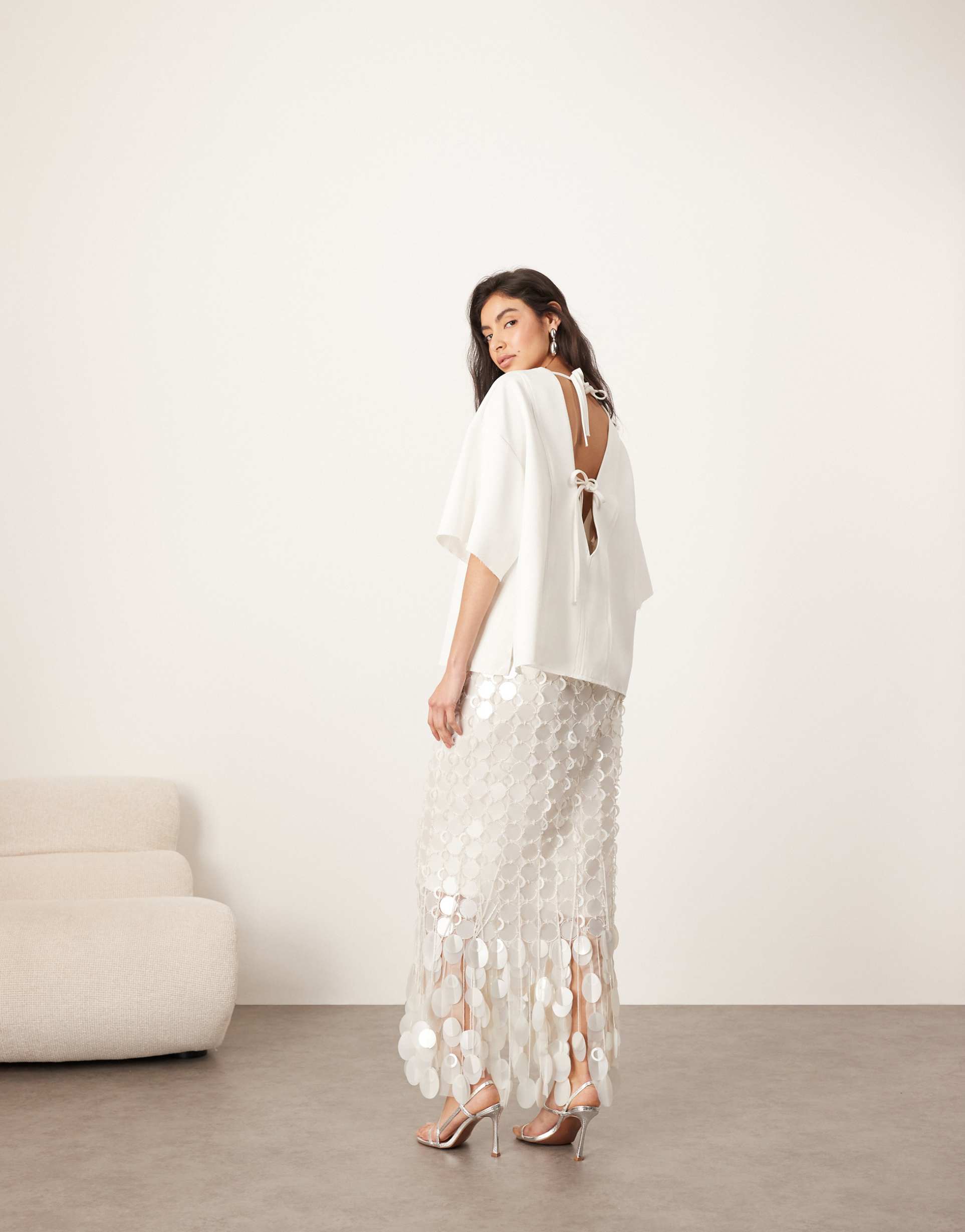 ARRANGE BOXY SEAMED TOP WITH TIE BACK DETAIL IN WHITE