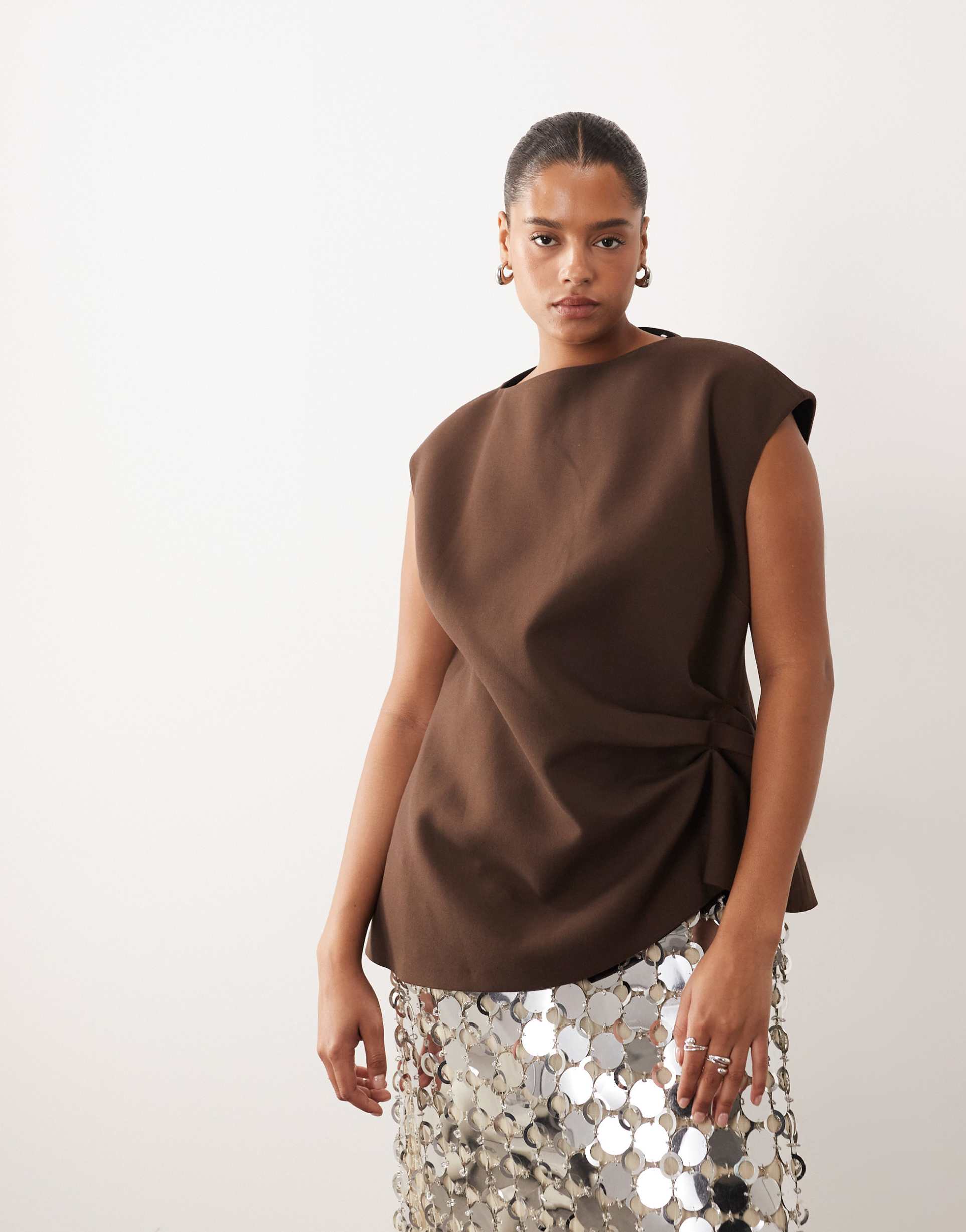 sleeveless brown top