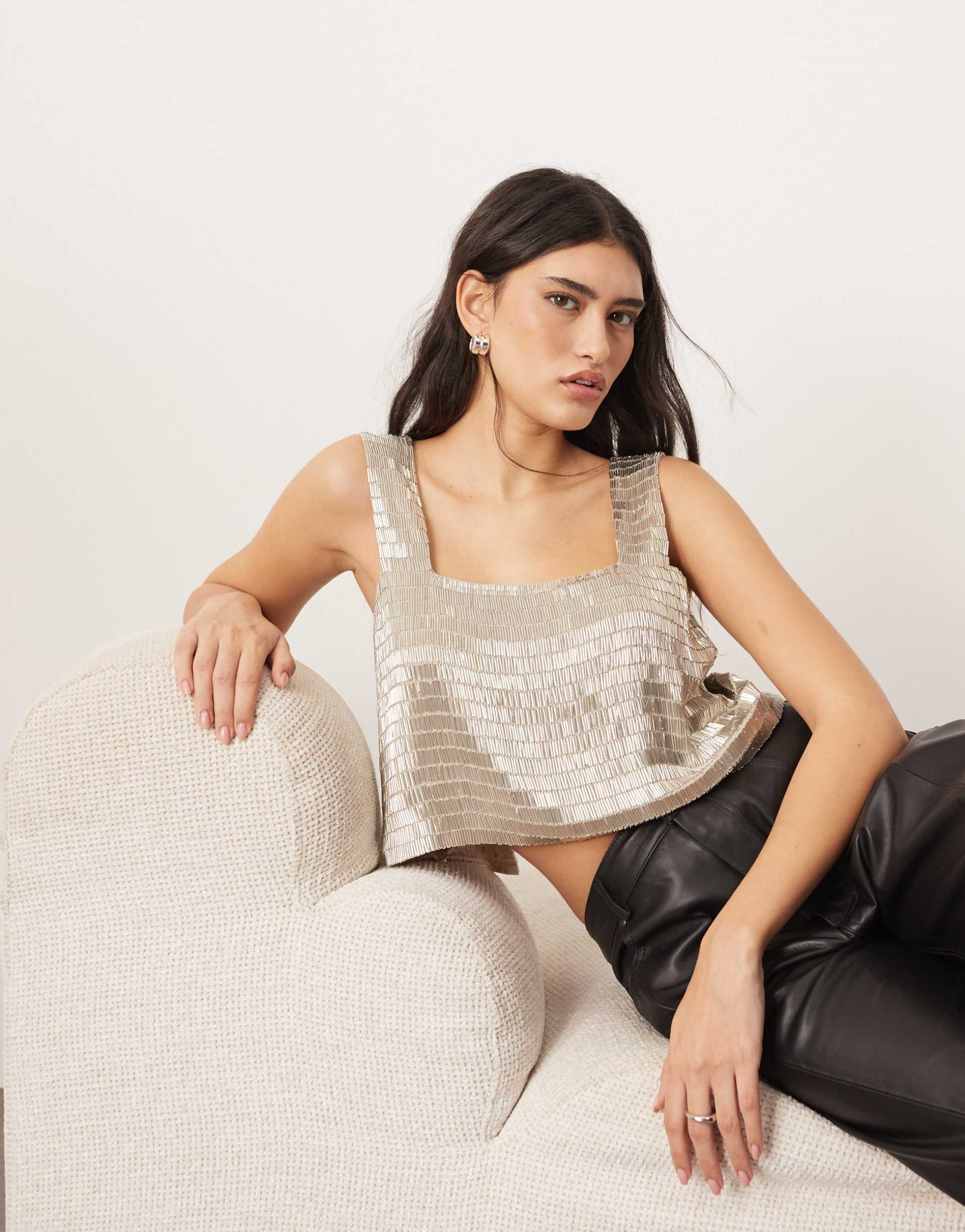 metallic silver top